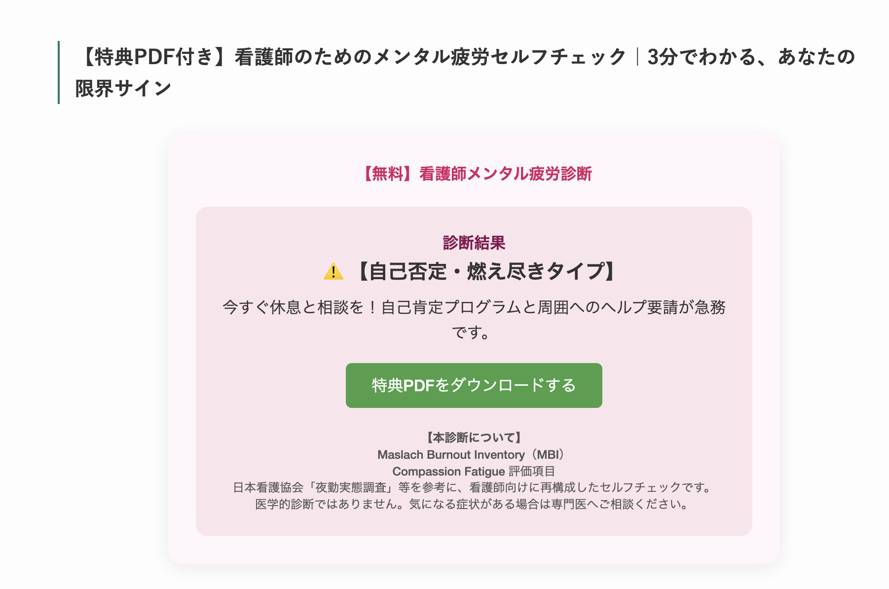 「診断だけで終わらず、PDFでもセルフケアが学べてありがたい」