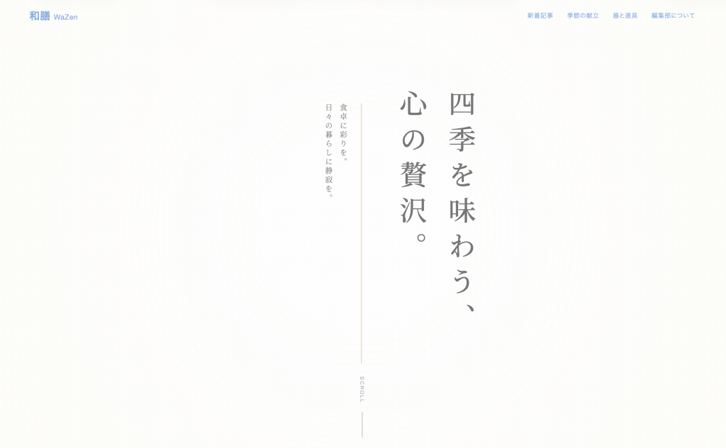 和膳 - WaZen | WordPressオリジナルテーマ作成・和風デザイン制作 新着記事 季節の献立 器と道具 制作のご依頼 和膳 WaZen 新着記事 季節の献立 器と道具 編集部について 今回のこのデザインをもとに あなた専用のWordPressテーマ制作が可能です 四季を味... -