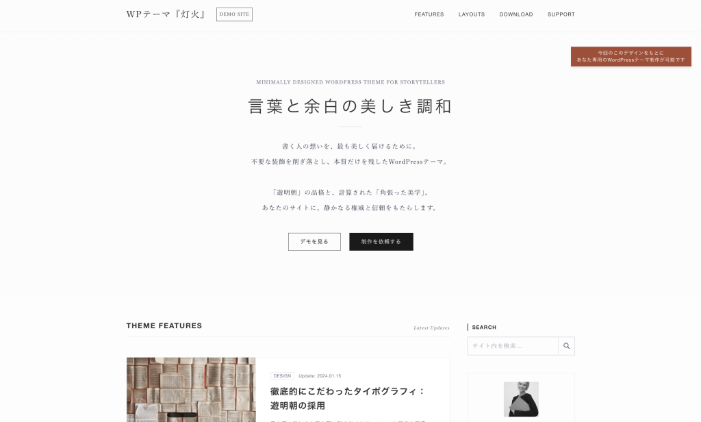 ワードプレスオリジナルテーマ作成・開発 | 『灯火』デモサイト – Minimal Mincho Theme