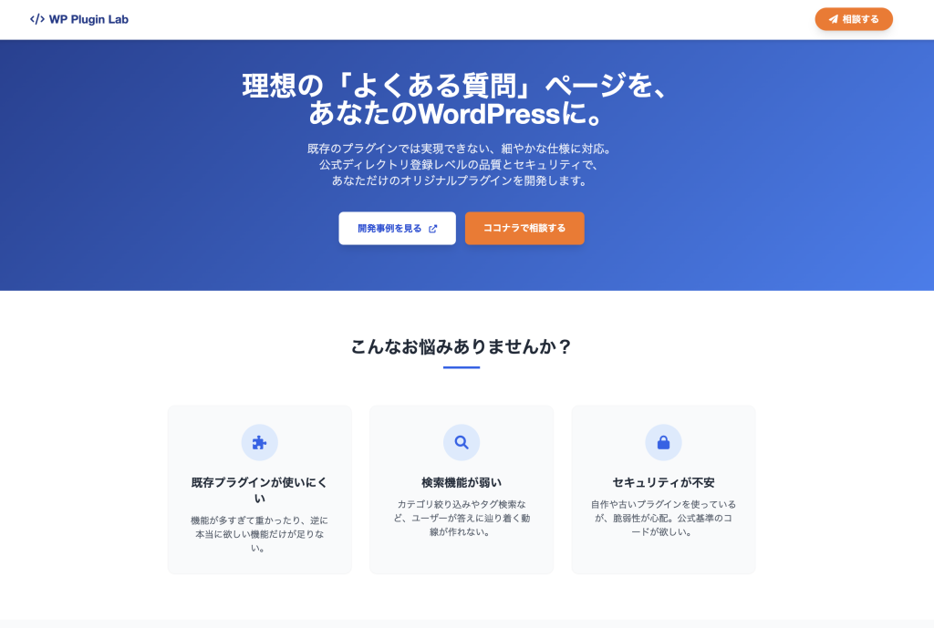 よくある質問(FAQ)ページの制作・WordPressプラグイン開発 | WP Plugin Lab